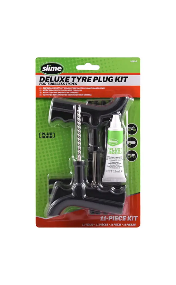 – Kit di riparazione pneumatici con nuovo Plug Bond atossico, innocuo e brevettato di Slime