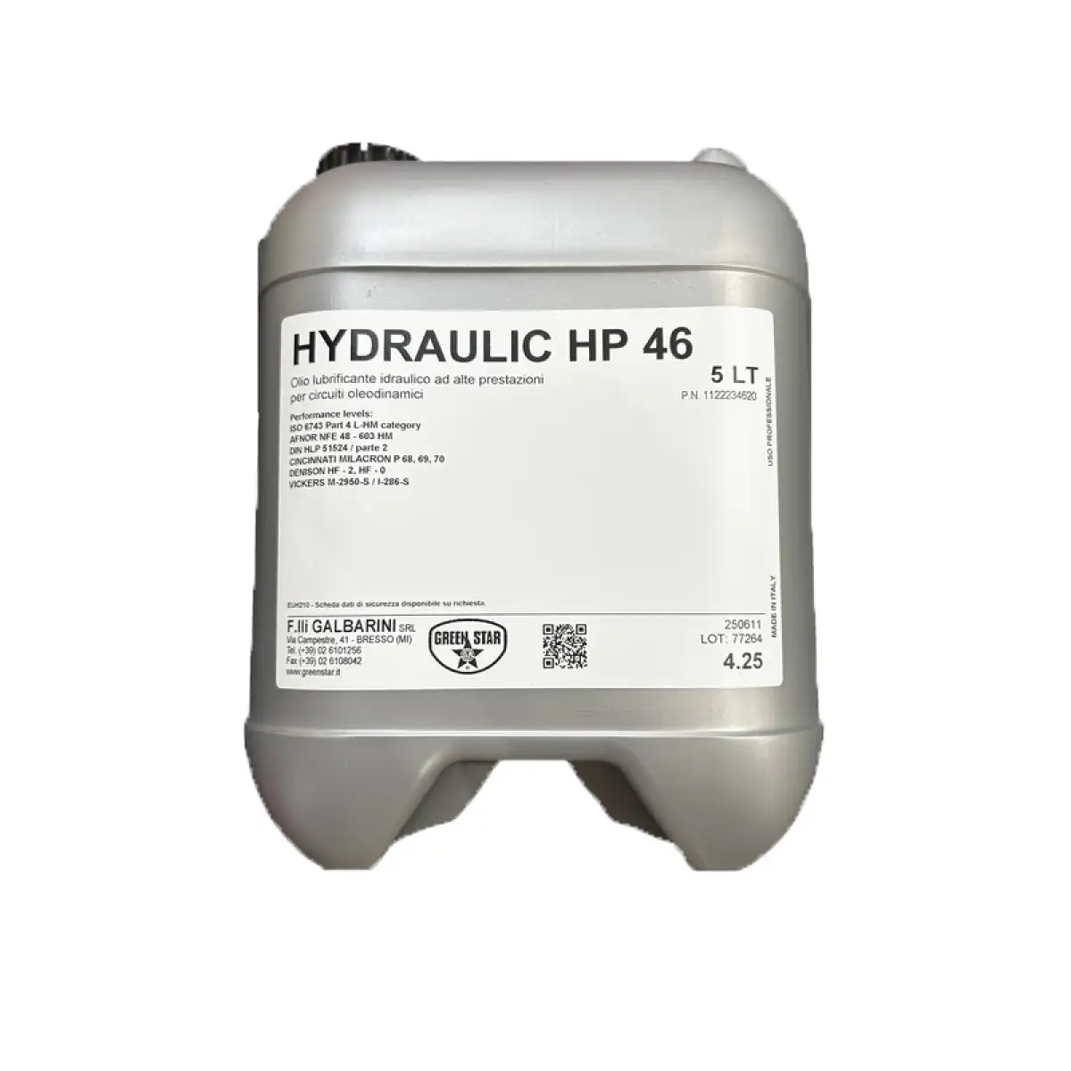 Green Star Hydraulic HP 46 è un olio idraulico paraffinico ad alte prestazioni, progettato per garantire affidabilità e protezione nei circuiti oleodinamici sottoposti a condizioni di lavoro gravose.