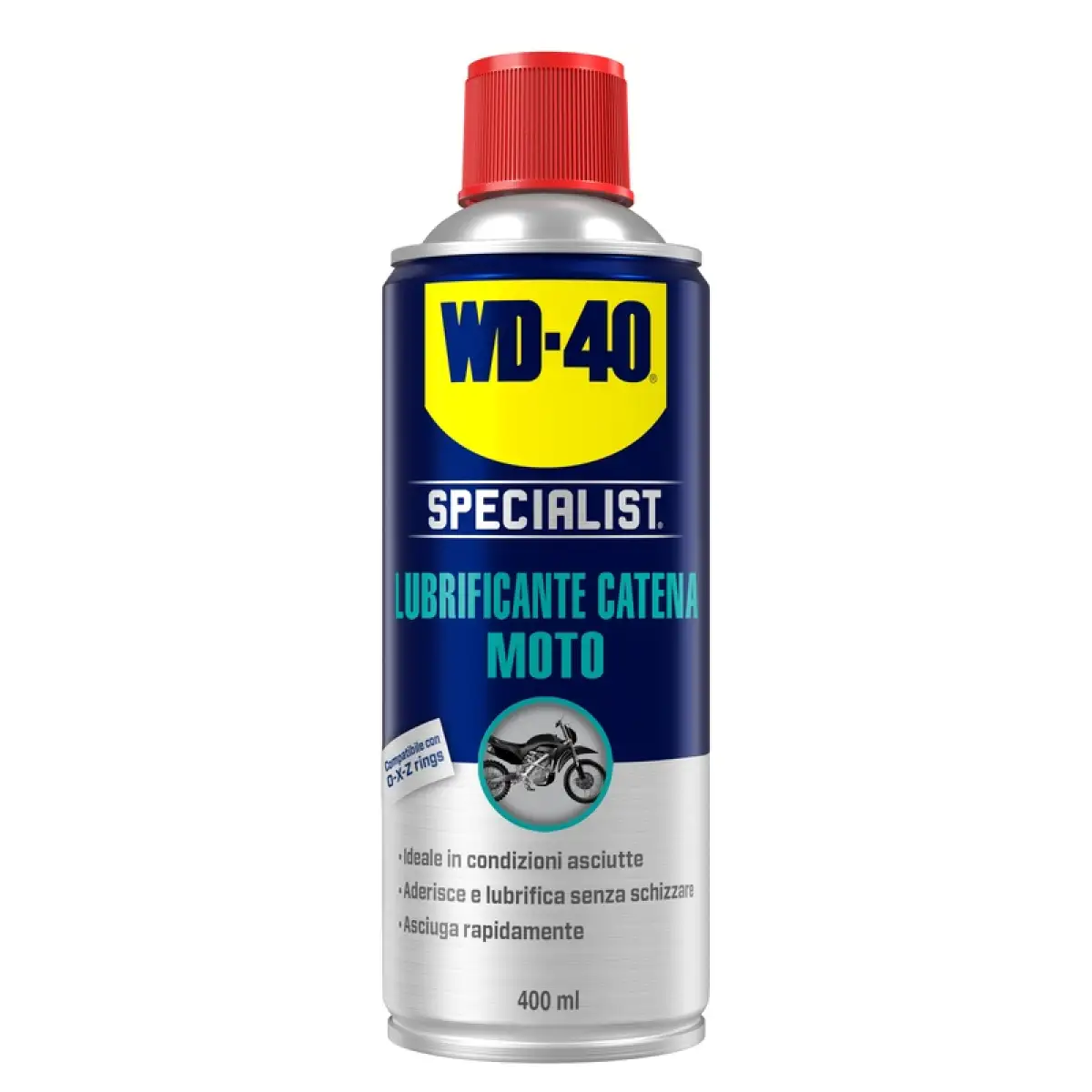 WD-40 Specialist Lubrificante Catena per Condizioni Asciutte è uno spray progettato per garantire una lubrificazione efficace delle catene in ambienti asciutti e polverosi.