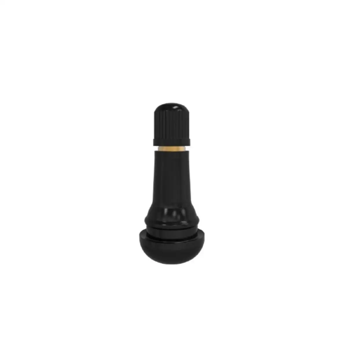 Design: Ha la forma classica di una valvola tubeless (senza camera d'aria).La parte inferiore è più larga e arrotondata, progettata per sigillare l'apertura nel cerchione. Il corpo centrale è affusolato. La parte superiore è filettata e presenta un cappuccio protettivo nero avvitato, di forma bombata e con scanalature per facilitarne la presa.