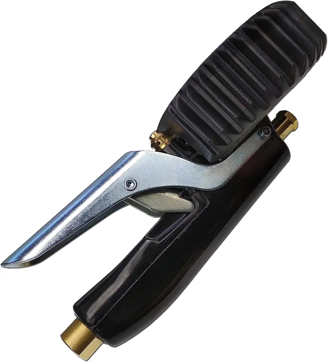 Impugnatura/Corpo: Un'impugnatura metallica lucida (cromata o in acciaio spazzolato) che ospita il meccanismo di rilascio o di bloccaggio della pressione.