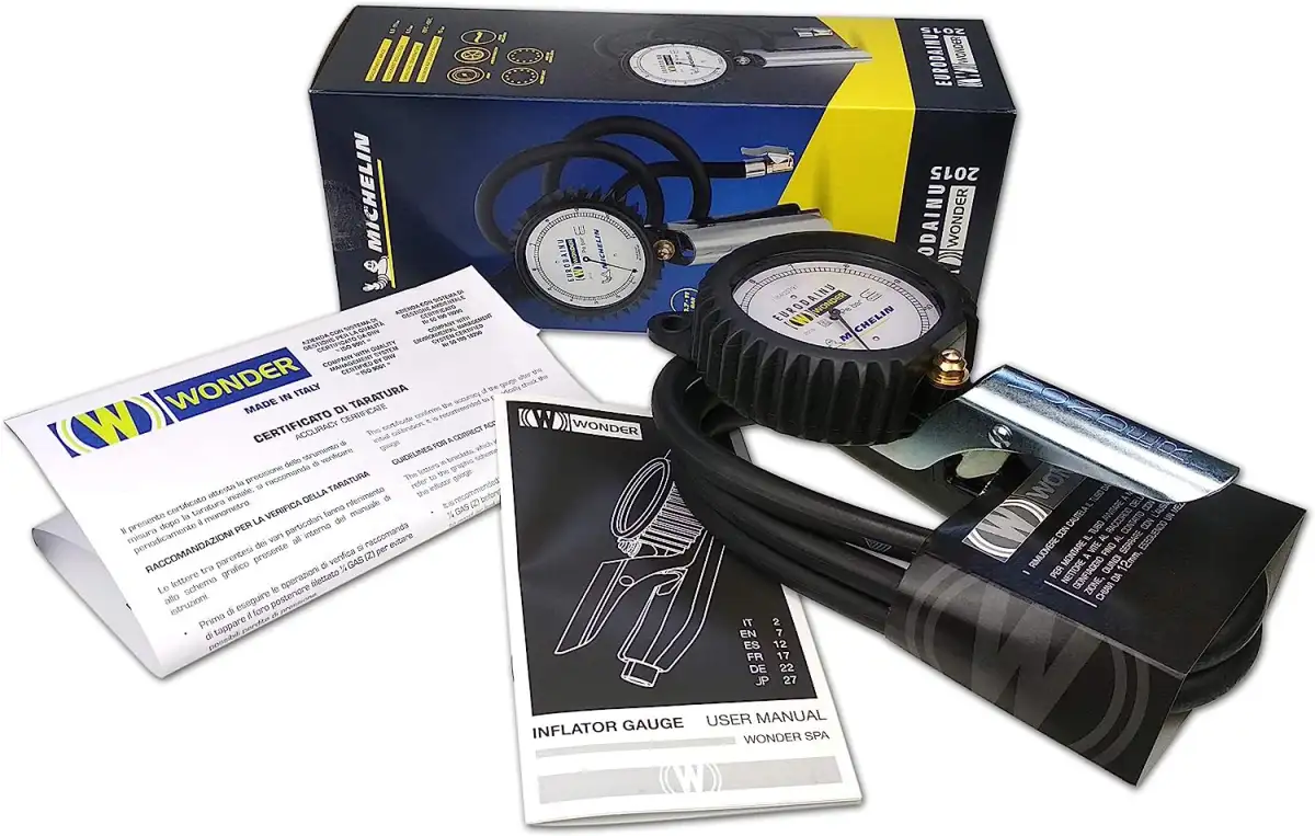 Si tratta di un misuratore di pressione (manometro) progettato specificamente per pneumatici, utilizzato per verificare e mantenere la corretta pressione dell'aria.