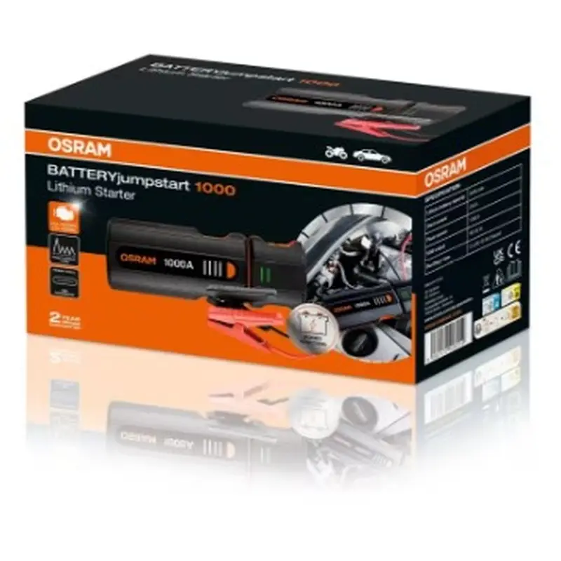 OSRAM BATTERYjumpstart 1000 è un avviatore di emergenza al litio progettato per offrire un supporto pratico, sicuro ed efficace in caso di batteria scarica. Grazie alla corrente di picco di 1000 A e alla corrente di avviamento di 250 A, è adatto all’avviamento di veicoli a 12V con motori benzina fino a 5.0 litri e diesel fino a 2.0 litri.