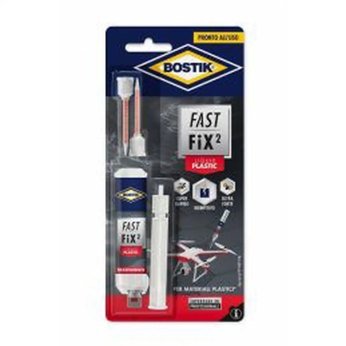 Bostik Fast Fix2 Liquid Plastic è una colla bicomponente professionale progettata per incollare e riparare in modo rapido e resistente numerosi materiali plastici. Grazie al sistema con beccuccio miscelatore, il prodotto è pronto all’uso e non richiede miscelazione manuale.