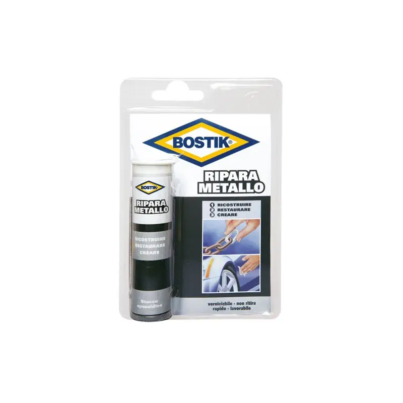 Bostik Ripara Metallo è uno stick epossidico bicomponente progettato per riparare, riempire e ricostruire parti metalliche in modo rapido ed efficace. Grazie alla sua consistenza modellabile, consente di intervenire facilmente anche su superfici irregolari o danneggiate.