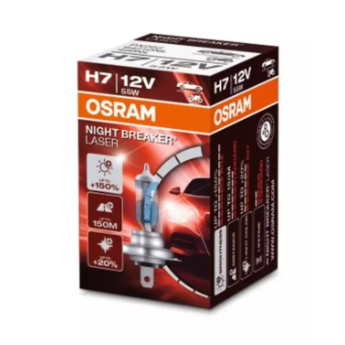 Le OSRAM Night Breaker Laser H7 sono tra le lampade alogene più performanti della gamma OSRAM, progettate per offrire una visibilità superiore e una maggiore sicurezza alla guida.